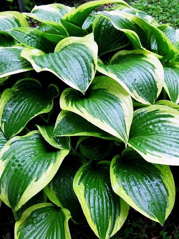Хоста Queen Josephine (Квин Жозефина). "Королева Жозефина" растет в форме куста красивой ровной вазовидной формы, который быстро разрастается вширь при небольшой высоте. Лист темно-зеленый с золотисто-желтой узкой каймой, которая в течение сезона становится белой, 15 х 10 см.