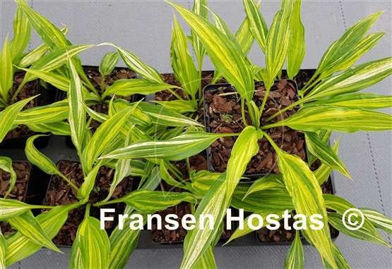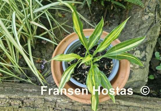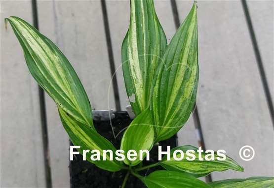 Длинные ланцетовидные зелёные листья с множеством белых и жёлтых прожилок.Цветы светло-лавандовые, растет в полутени и полной тени. Высота 30 - 35 см,нарастает средне.