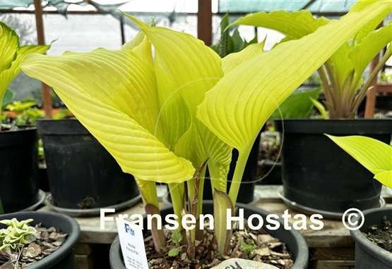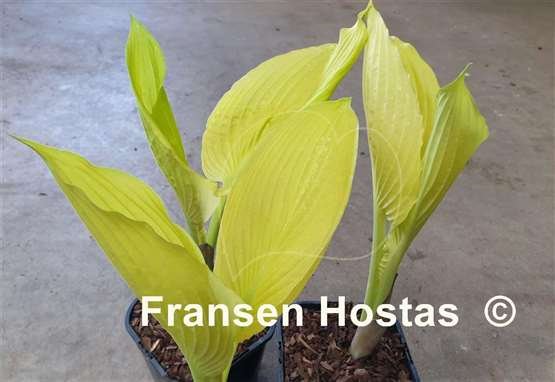 Крупные жёлтые листья с сильно волнистыми краями. Ближе к концу сезона листья становятся зелёными.Цветы лавандовые, растет в полутени и полной тени. Высота 45-50 см,нарастает средне.