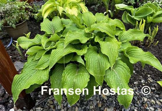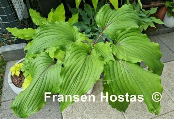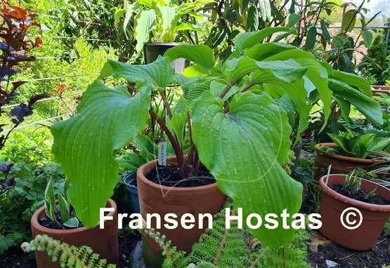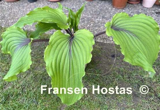 Блестящие тёмно-зелёные листья с сильно волнистыми краями на красных черешках. Красный цвет черешков распространяется на весь лист. Цветы лавандовые, растет в полутени и полной тени. Высота 40-45 см,нарастает средне.