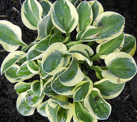 Мини-хоста семейства «мышей», маленькие светло голубовато зеленые с кремово белой окантовкой листья, спорт Blue Mouse Ears,Высота 10- 15 см.